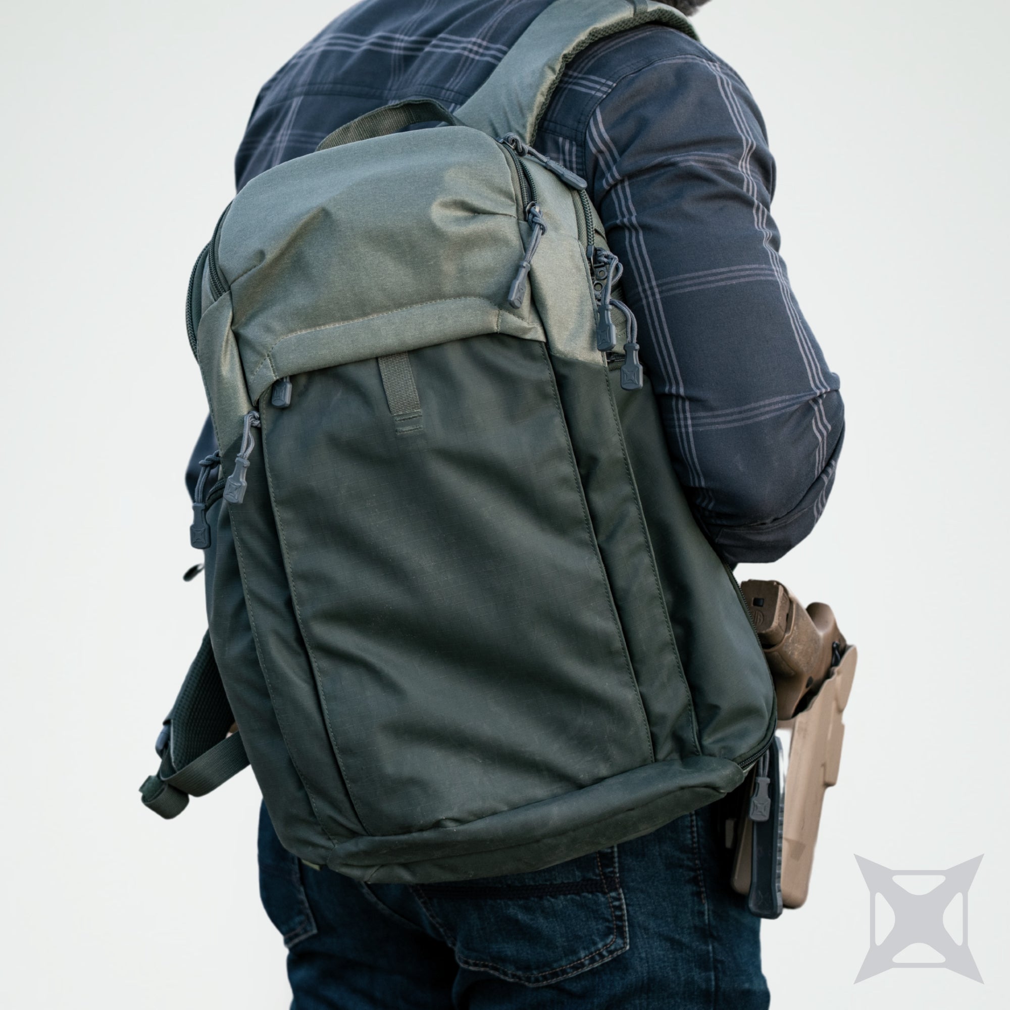 The Gamut Plus expanded the line and capacity to 35L and deeper dimensions for larger gear, including compact rifles. The Gamut Plus kept the covert style while adding a helmet-compatible beavertail flap, quick-release straps, and full loop-lined interiors for customization.