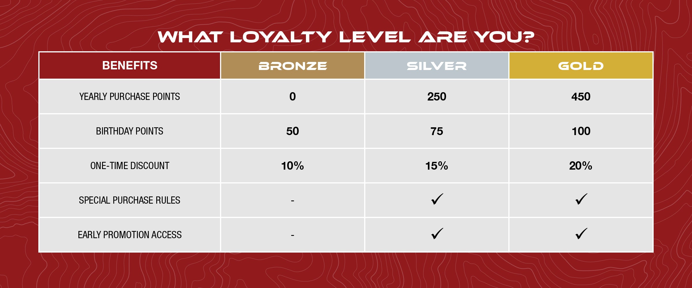 The levels reset every 12 months in the month of January. To maintain a level for the next 12 months, you should have earned the minimum qualified points required by making purchases in the last 12 months. The levels for the upcoming year get evaluated based on the points earned through purchases in the last year.
