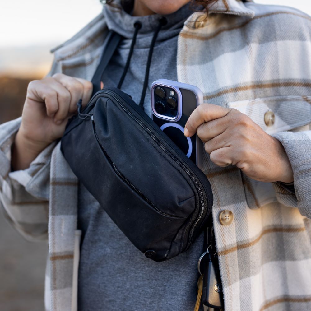 The Everyday Fanny Pack 2.0 has a new exterior fabric, adding a sleek aesthetic and superior water resistance. Also, its new ultra-secure buckle system ensures your essentials stay on you while you’re on the move.
